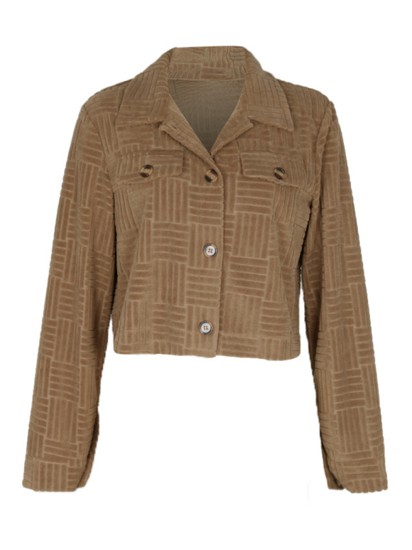 Fashionable new solid color corduroy short jacket for women, the simple design makes the boring season colorful and interesting. A variety of matching options make you confident and beautiful. Please use the sizing guide shown in our images. Please read each element of the sizing guide carefully before choosing a size. The size is measured manually, and there is an error of 1-3cm, which is normal.