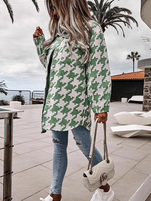 Fashionable loose long-sleeved houndstooth wool coat