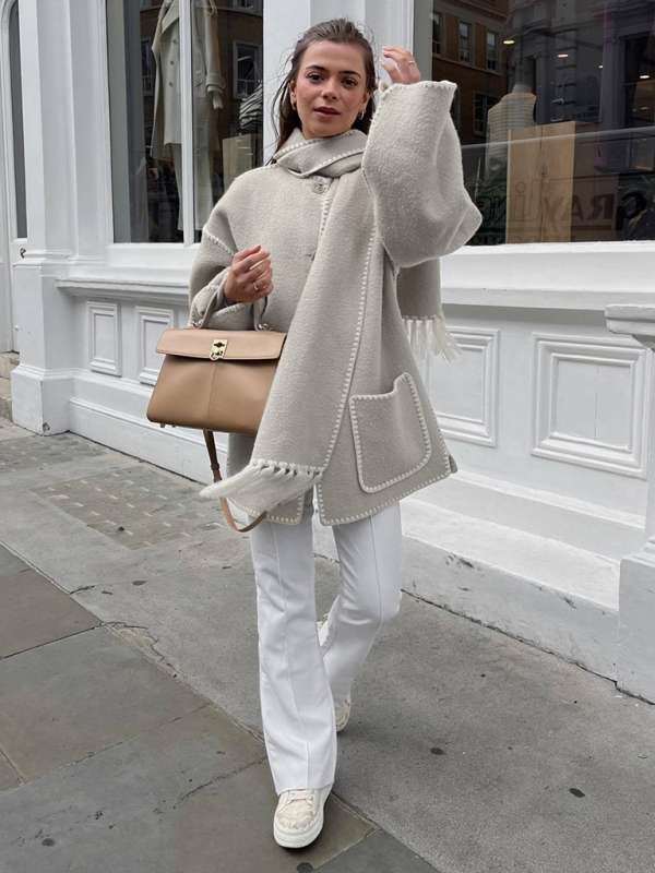 The new autumn and winter fashionable woolen jacket, thickened and loose, with scarf and fringe for women, is suitable for many occasions. The simple design makes the boring season colorful and interesting. A variety of matching options make you confident and beautiful. Please use the sizing guide shown in our images. Please read each element of the sizing guide carefully before choosing a size. The size is measured manually, and there is an error of 1-3cm, which is normal.