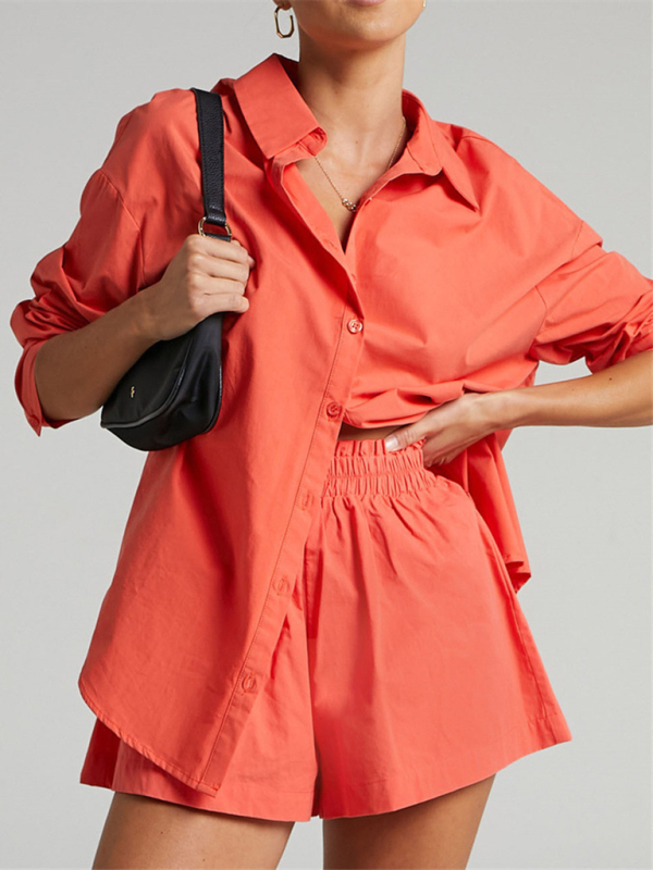 The two-piece solid color single-breasted long-sleeve lapel shirt shorts loose fashion casual suit is suitable for many occasions, and the simple design makes the boring season colorful and interesting. A variety of collocation options make you confident and beautiful. It fits snugly without restricting your movement. Key features include. – comfortable fabric casual daily wear