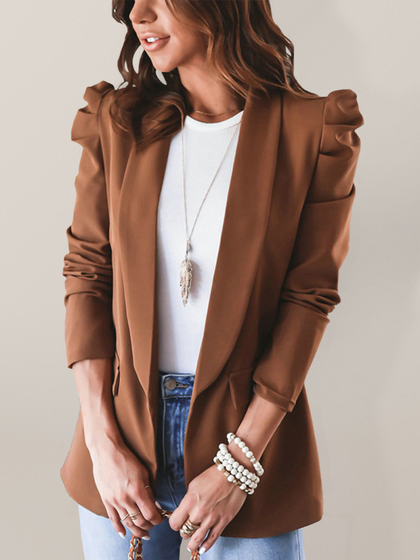 Women’s casual commuting long-sleeved shoulder pad puff sleeve slim suit