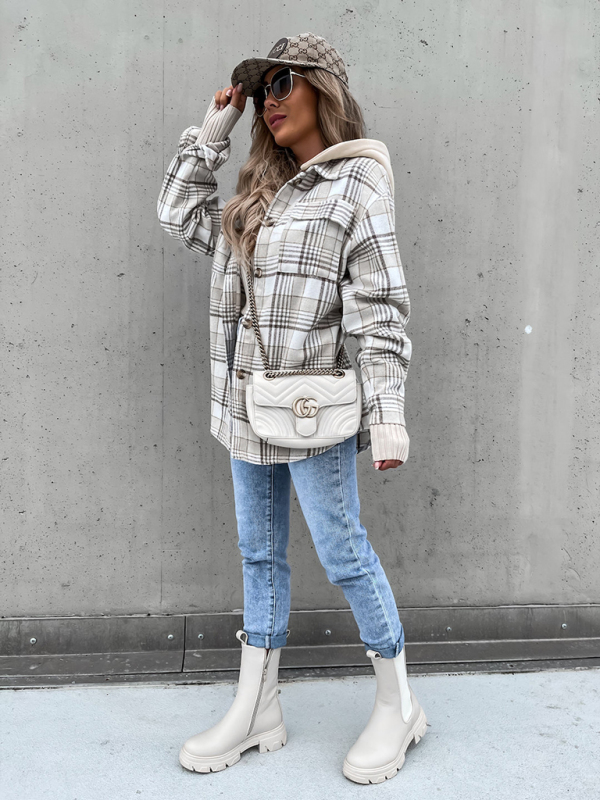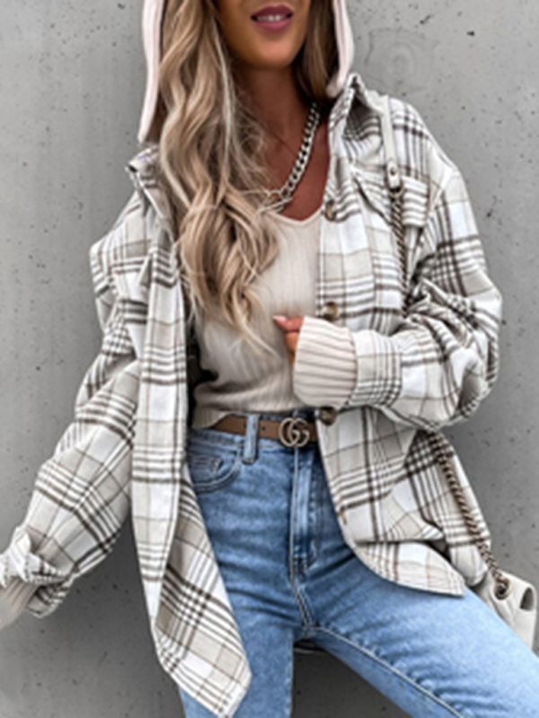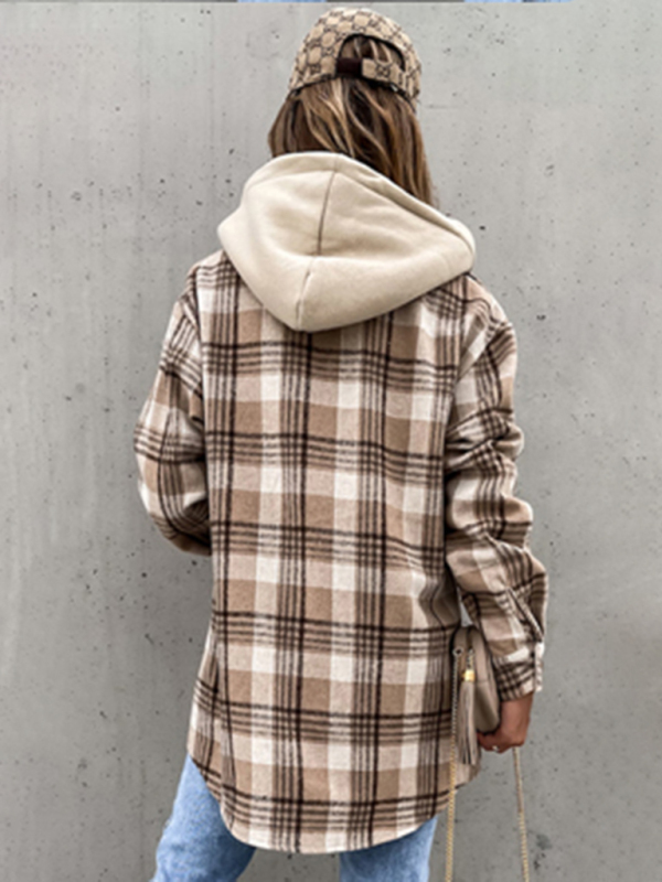 Women’s Coat Fashion Hooded Wool Plaid Shirt Coat. Please use the size guide shown in our pictures. Before choosing a size, please read each element of the size guide carefully. Unique design, classic style, casual and comfortable. It is suitable for outing and leisure. The size is measured manually, and the error of 1-3cm is normal.
