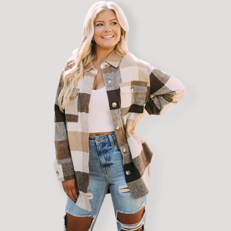 Be the first to review “Women’s Plaid Shirt Single-Breasted Woolen Coat”