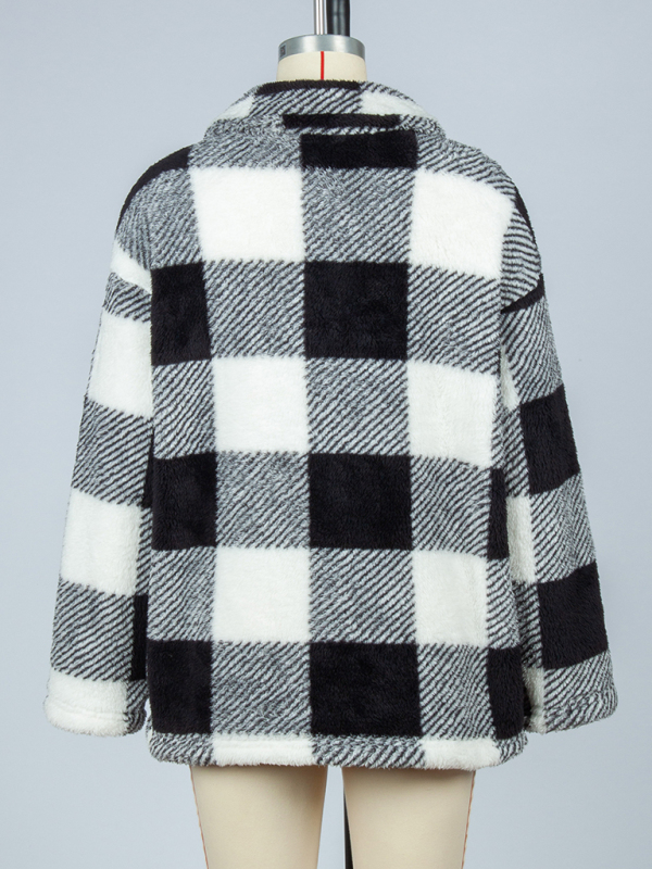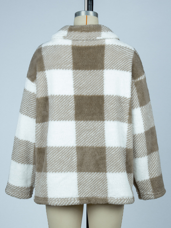 Women’s plaid single-breasted double-sided velvet jacket. Please use the size guide shown in our pictures. Before choosing a size, please read each element of the size guide carefully. Unique design, classic style, casual and comfortable. It is suitable for outing and leisure. The size is measured manually, and the error of 1-3cm is normal.